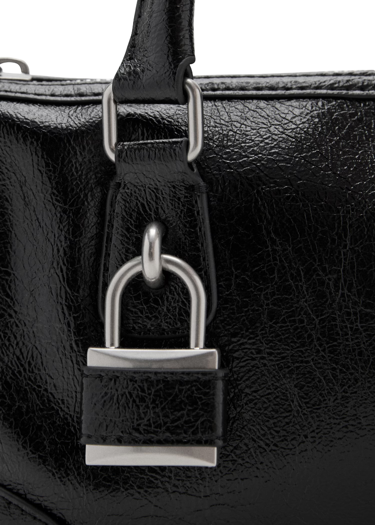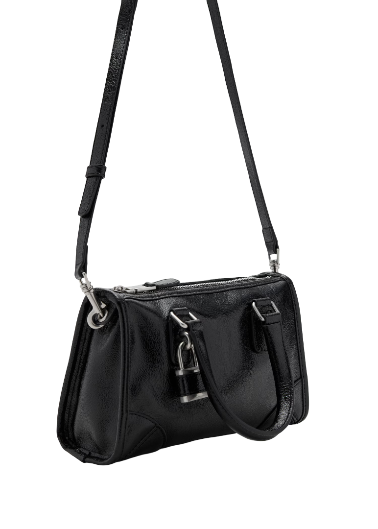 Turn heads with this Mini Shiny Handbag, designed to combine style and practicality for everyday use. Made from faux leather with a glossy finish, this small rectangular bag features two short hand grips and a long detachable shoulder strap for versatile carrying options. A zip closure and padlock detail keep your essentials secure, while the inner lining adds a polished touch. Perfect for casual outings or special occasions, this handbag is both chic and functional.